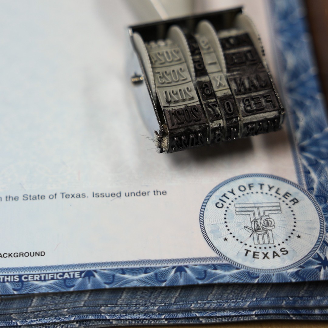 Birth certificates are available for anyone born within Texas since the year 1926 (in most cases). Anyone born within the City of Tyler since the year 1910 can also receive their birth certificate from our office. Death certificates are available to eligible family members of persons who passed in the City of Tyler since 1910.