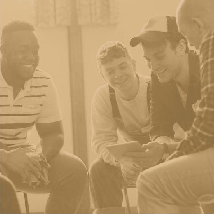 Dad’s Huddle group sessions give fathers an opportunity to decompress and share useful parenting tips.